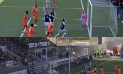 Players from Falkirk F.C. were convinced that the cross delivered by the Belgian had gone out of play, but new footage suggests otherwise. A reverse-angle clip...