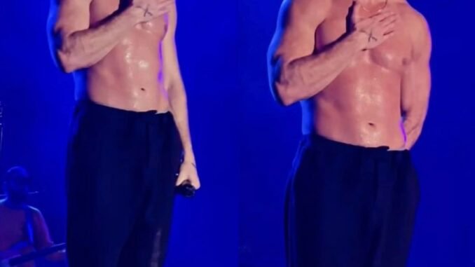 The show began with familiar fire: drums pounding, guitars slicing through the air, and the frontman storming across the stage with the energy fans adored. But as the set progressed, small cracks became visible—moments where he closed his eyes too long, where his voice wavered, where he paused between lyrics as if grounding himself.