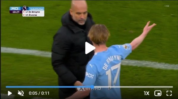 Watch Manchester City best Midfielder Kevin De Bruyne angry expression with Pep Guardiola substituting him in the 68th minute of the match vs Liverpool – nextfootballnews