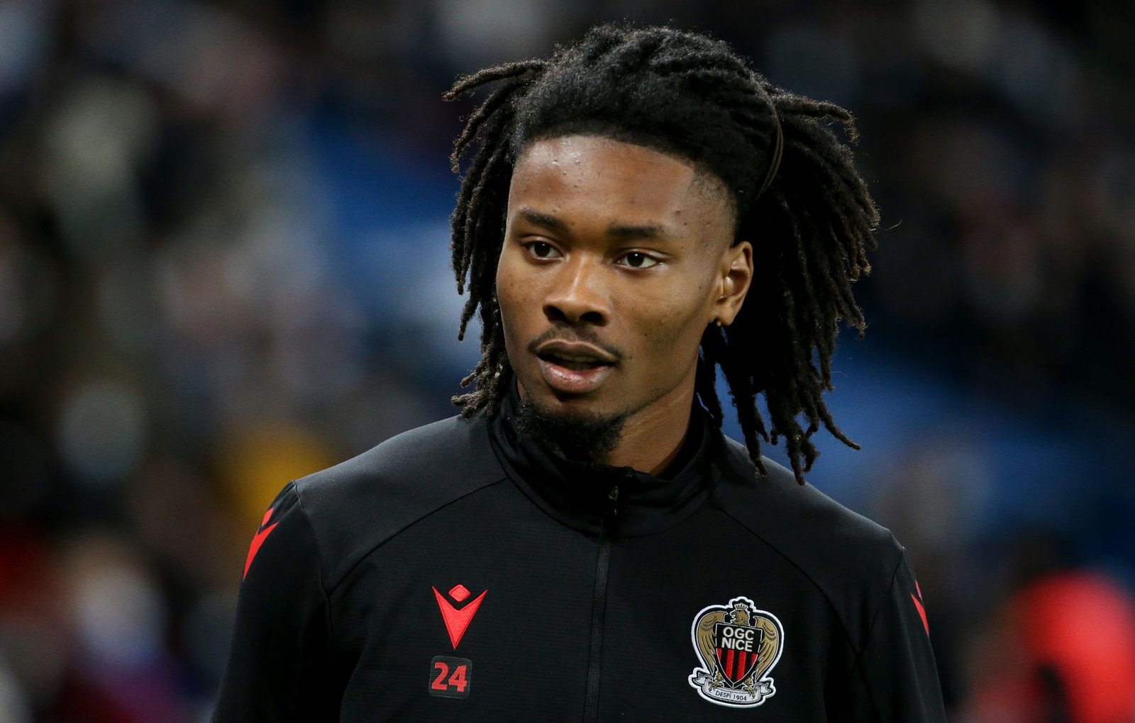 PARIS, FRANCE – DECEMBER 1: Khephren Thuram of Nice during the Ligue 1 Uber Eats match between Paris Saint-Germain (PSG) and OGC Nice (OGCN) at Parc des Princes stadium on December 1, 2021 in Paris, France. (Photo by John Berry/Getty Images)