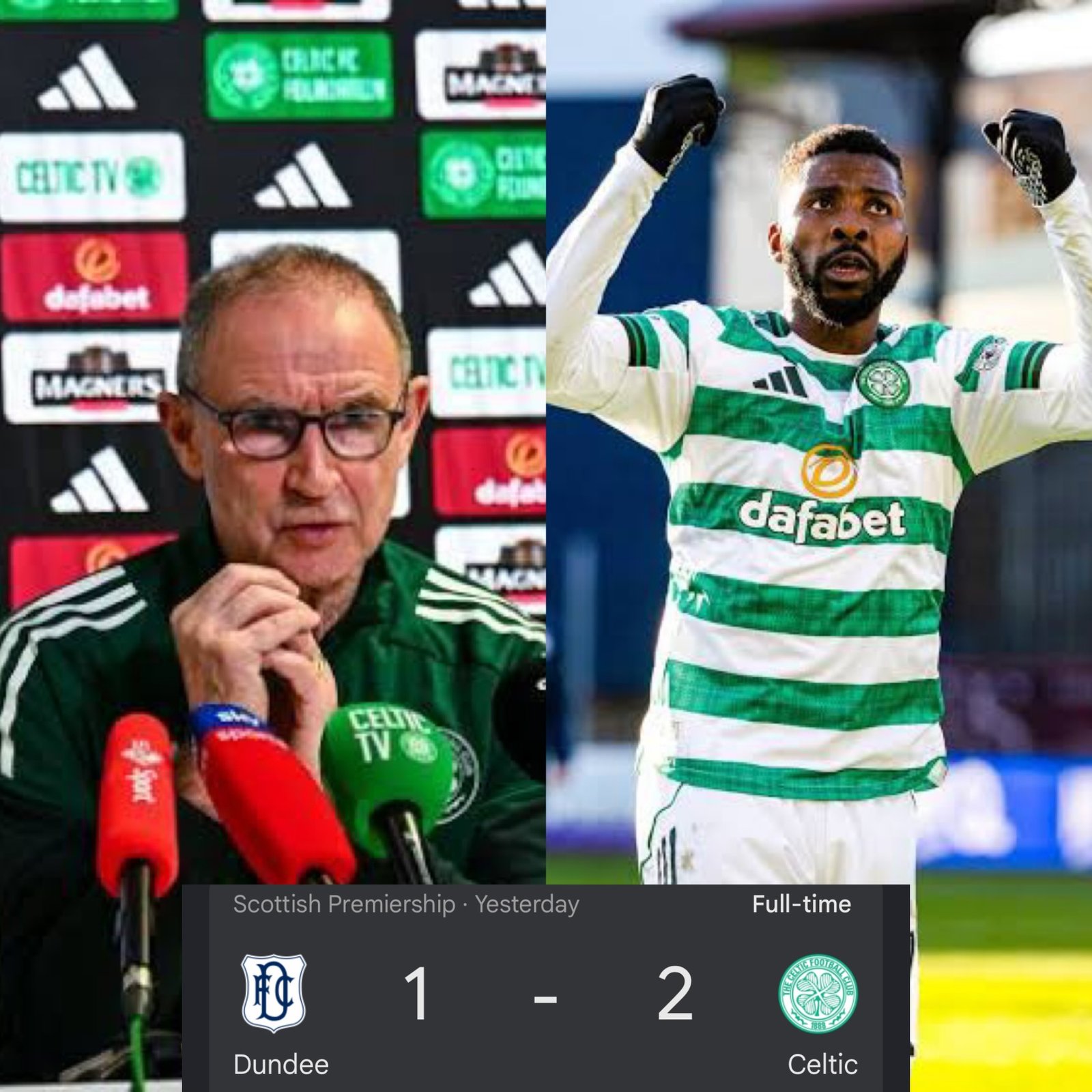 Martin O’Neill applauds Kelechi Iheanacho after Celtic edge past Dundee FC 2-1