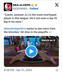Jackson Jr. was very underwhelming in Memphis’ first-round playoff series against the OKC Thunder this year, averaging just 16.0 points, 5.0 rebounds, 1.5 assists, and 1.0 steals with 37.9/27.3/85.0 shooting splits through four games.