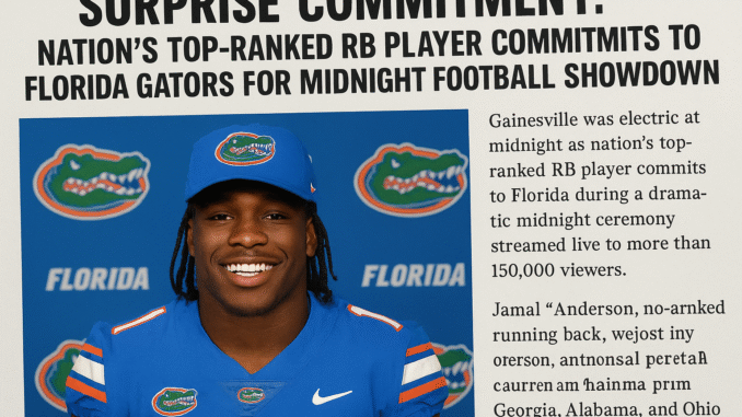 Gainesville was electric at midnight as one of the most stunning recruiting moments of the year unfolded. The Florida Gators, a program hungry to re-establish its dominance in the SEC, just landed a commitment that could reshape the trajectory of its entire offense. The nation’s top-ranked running back, Jamal “Jet” Anderson, shocked analysts, coaches, and fans nationwide by announcing his commitment to Florida during a dramatic midnight ceremony streamed live to more than 150,000 viewers.