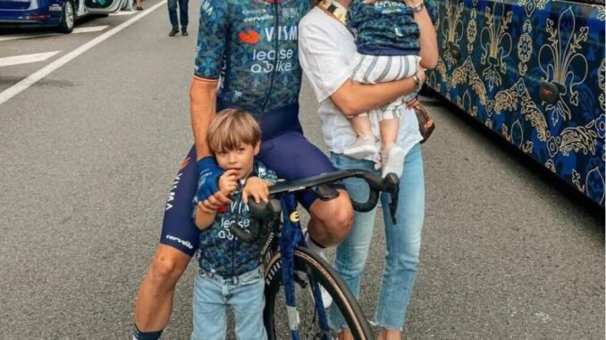 Op een zonovergoten middag ergens langs het Europese wielerparcours, omringd door juichende fans en gespannen ploegen, vond een moment plaats dat alle koersdruk en klassementen even naar de achtergrond duwde. Geen zege op het podium, geen gesprint in de laatste meters – maar pure, onvoorwaardelijke liefde. Wout van Aert, de Belgische wielerheld, finishte met kracht en klasse, maar het waren geen bloemen of medailles die hem als eerste opwachtten. Het was zijn gezin – en hun warme omhelzing bleek zijn mooiste overwinning van de dag.